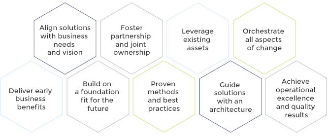 To ensure our clients succeed in their transformation objectives and to deliver clear value, we apply a set of proven principles: