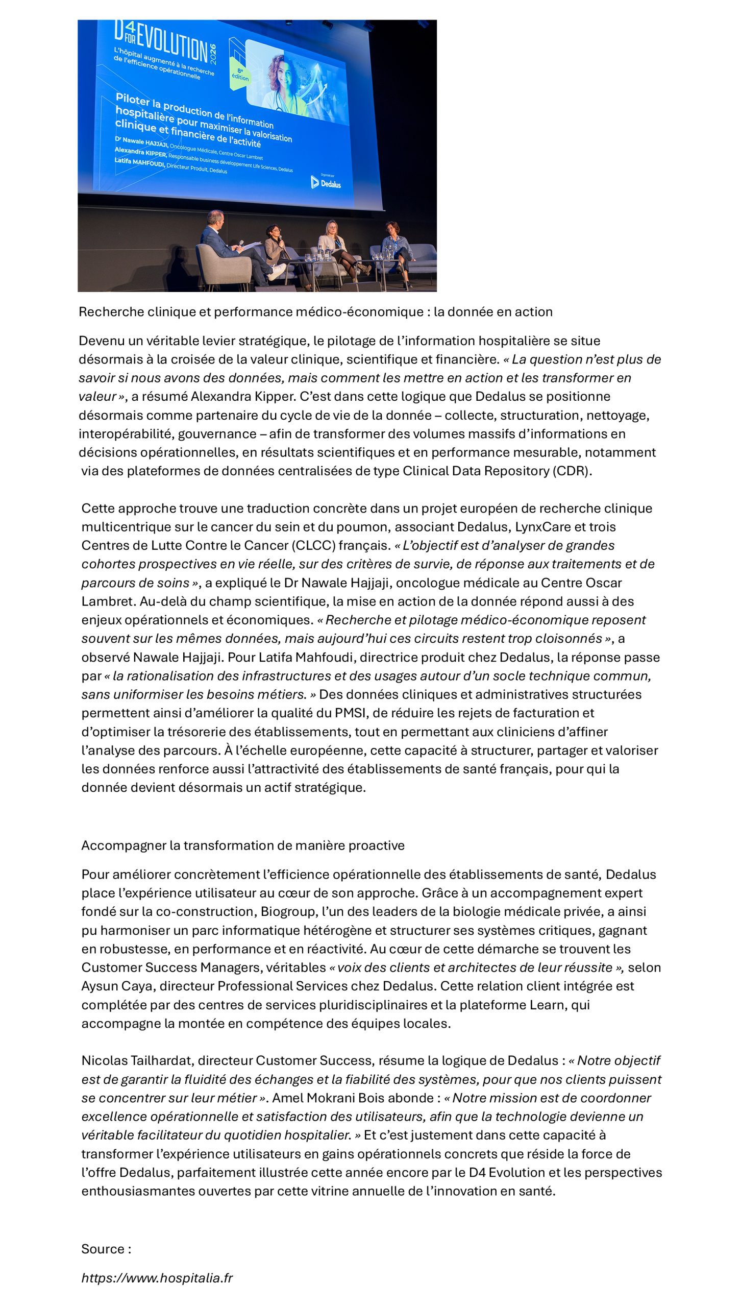 D4 Evolution 2026 : Dedalus met la donnée en action